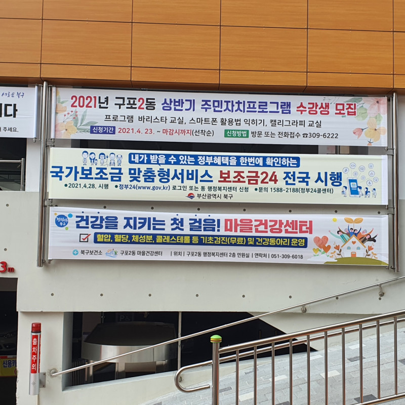 구포2동: 행정게시대470*70(계속 걸린 현수막 떼고 달아주기로)